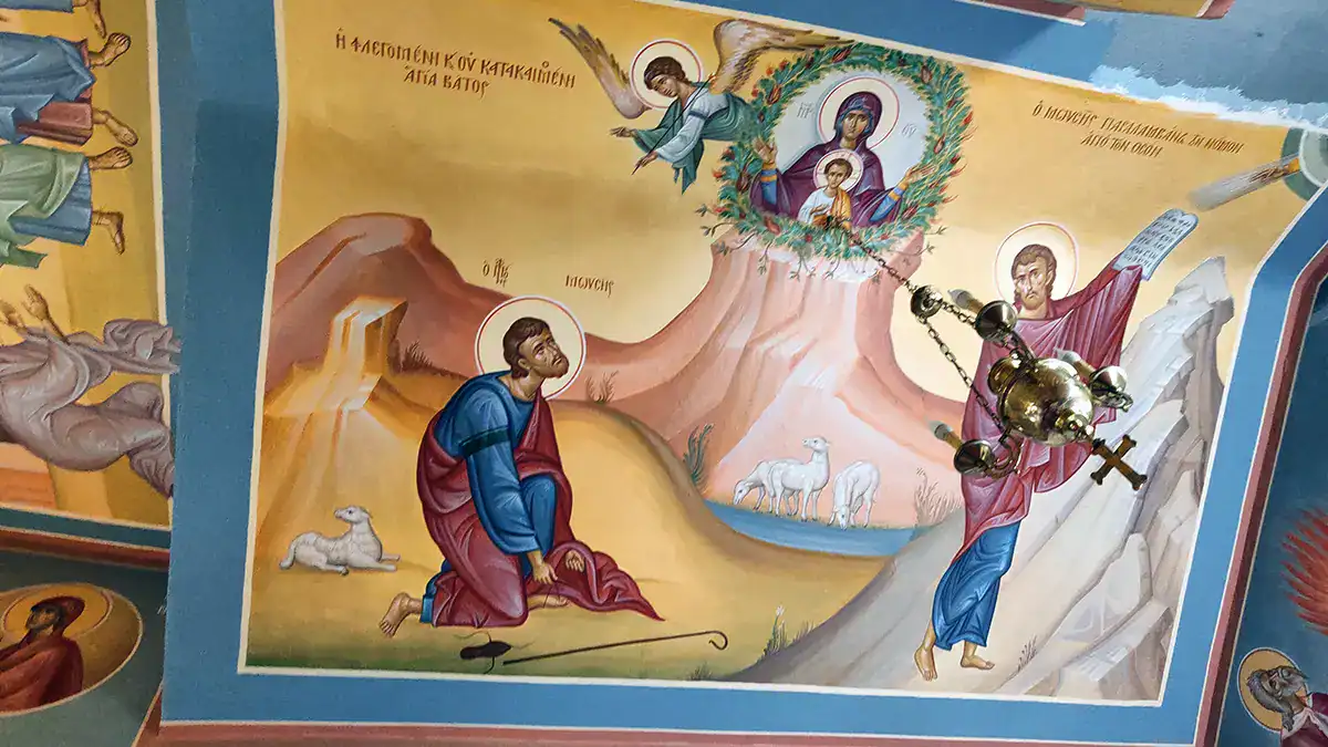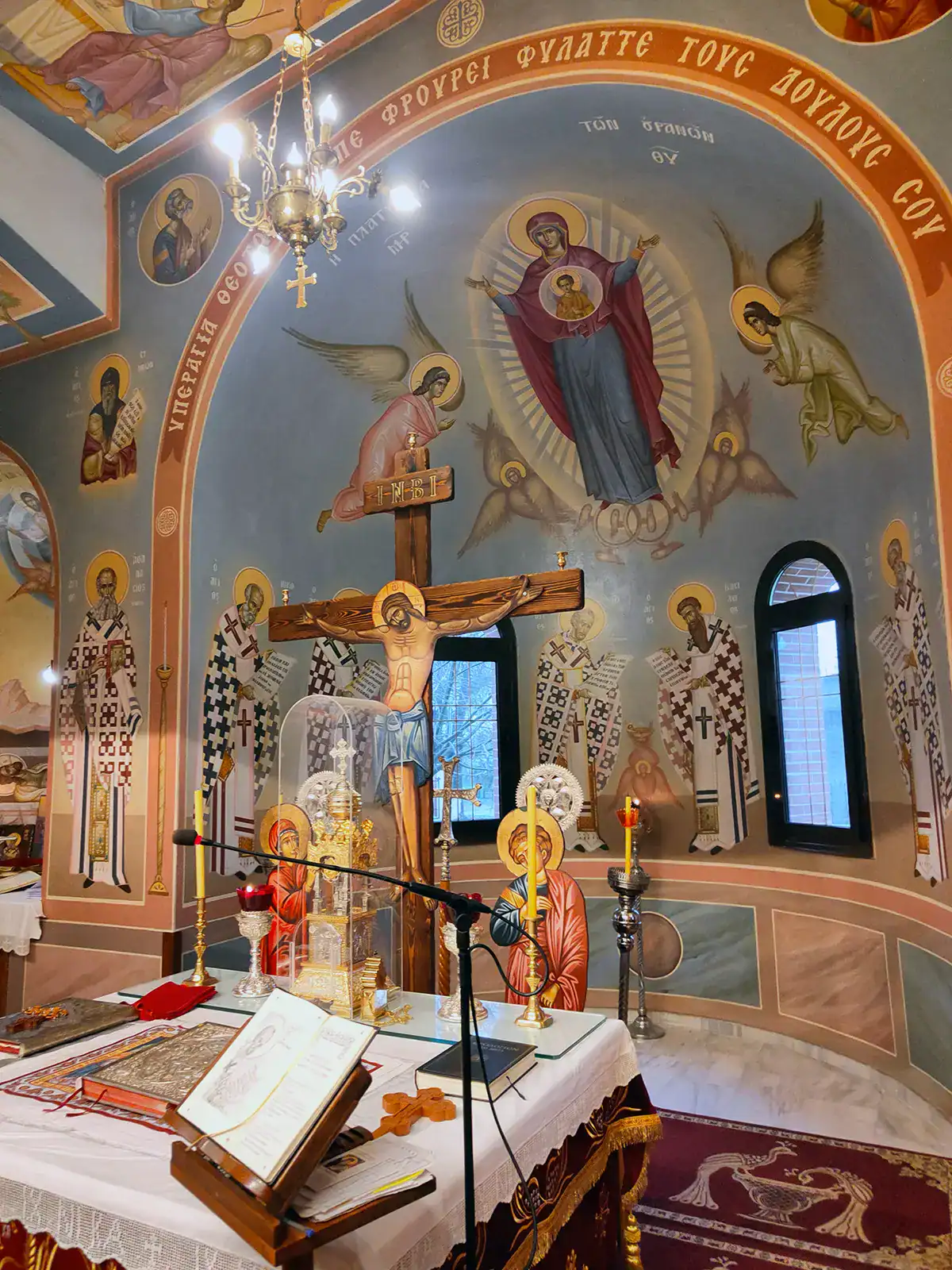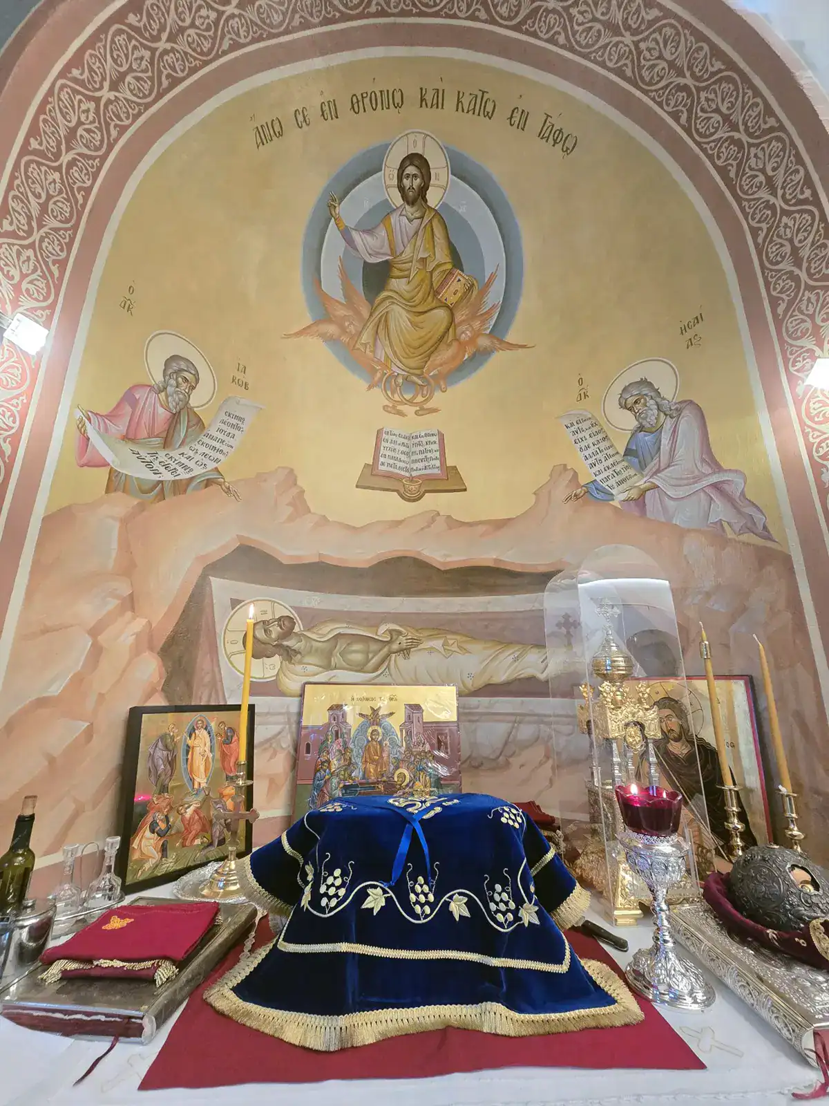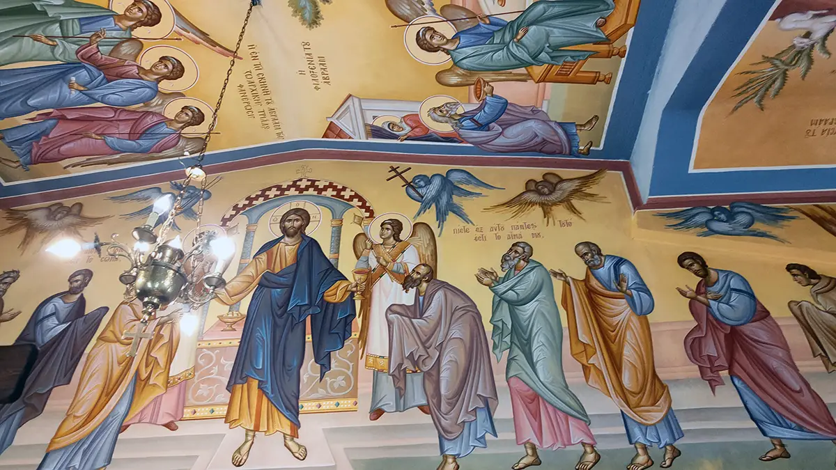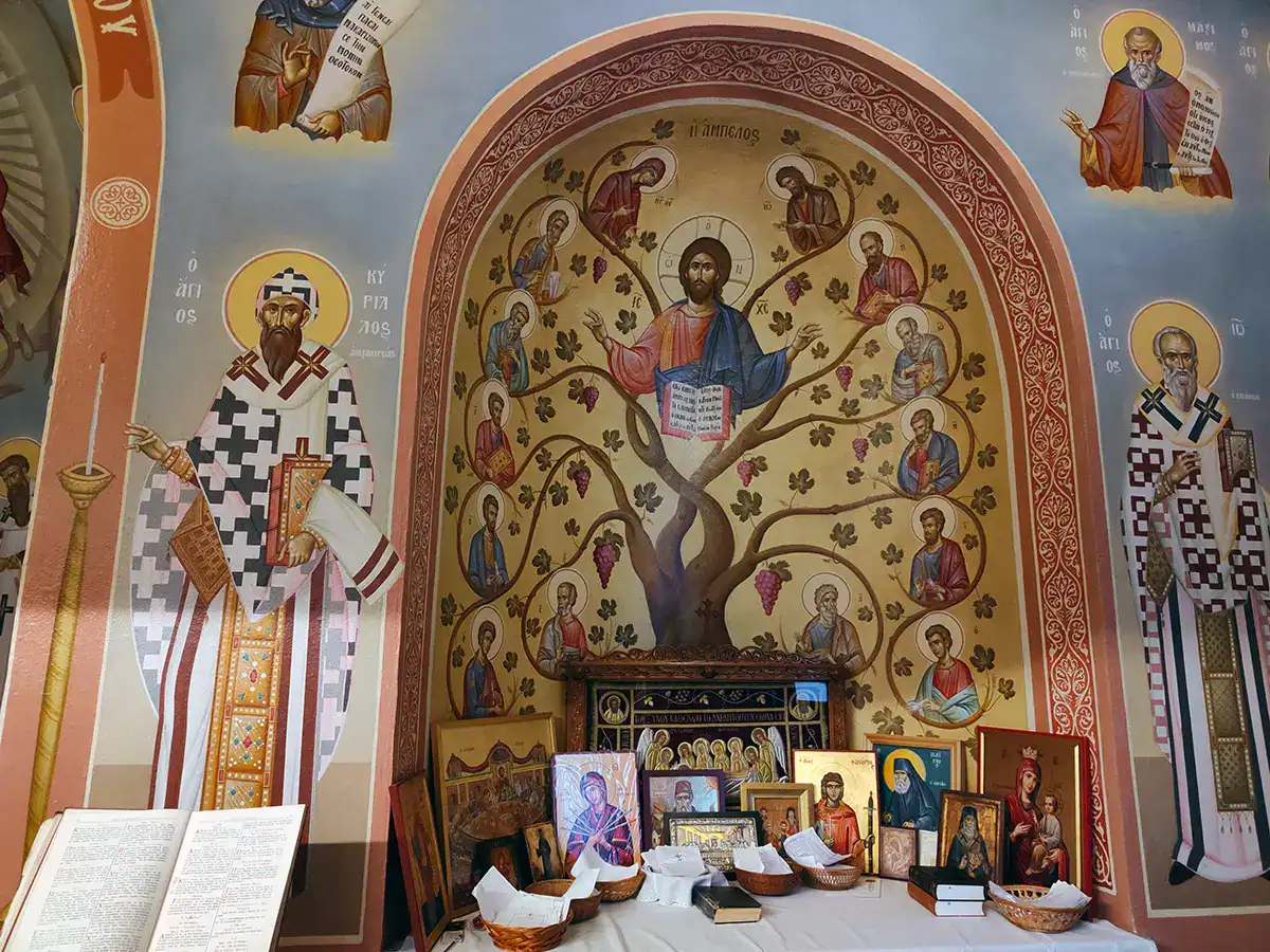 Μετά την αγιογράφηση του Ναού, ιδιαίτερη ευλογία αποτελεί η ολοκλήρωση των νέων αγιογραφιών στο Ιερό Βήμα. Καθώς ο χώρος αυτός παραμένει απρόσιτος για τους περισσότερους πιστούς, επιθυμούμε να μοιραστούμε μαζί σας την πνευματική κατάνυξη που προσφέρουν οι νέες παραστάσεις.