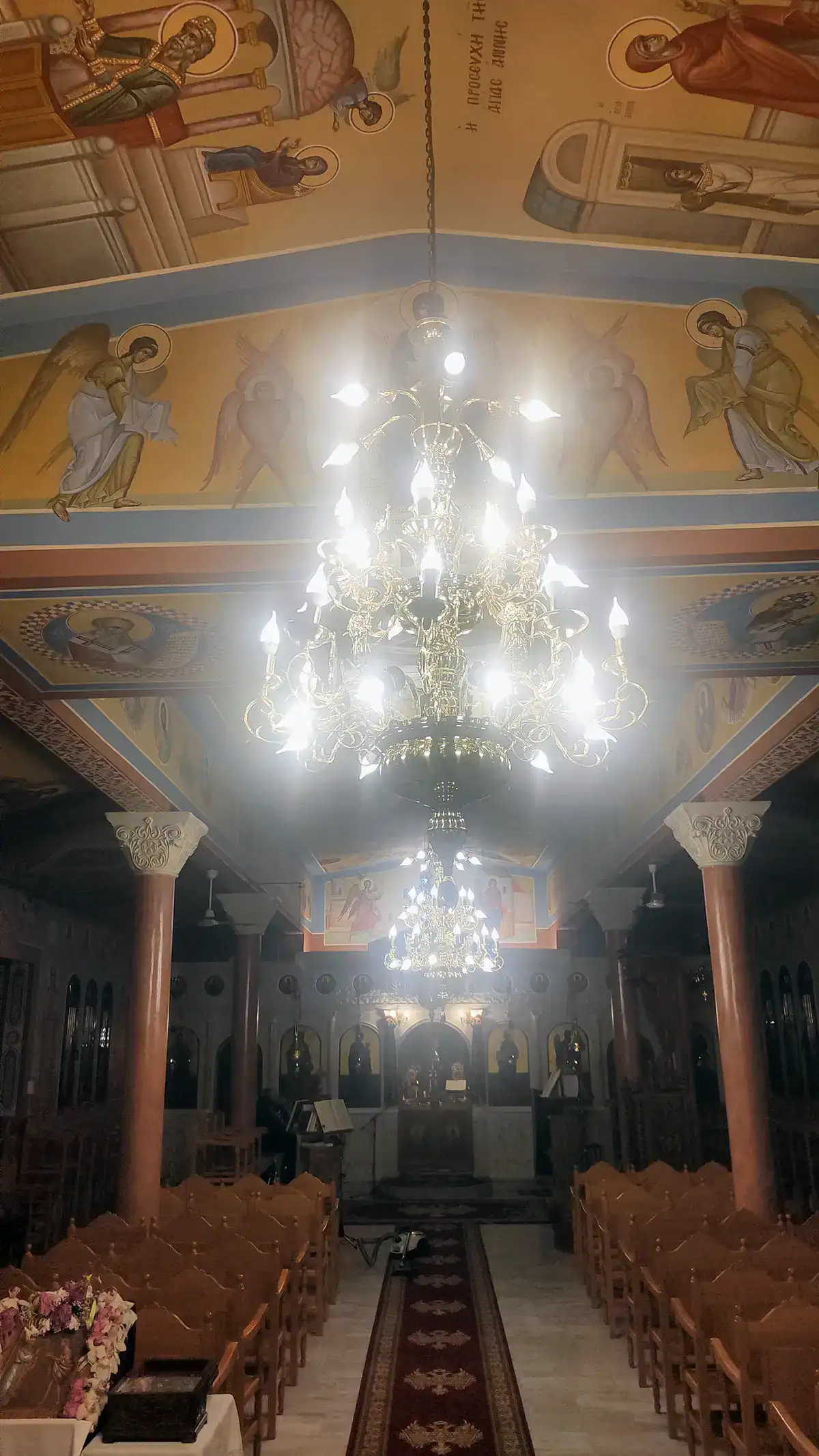 Παράλληλα με το αγιογραφικό έργο, πραγματοποιήθηκε η αλλαγή των πολυελαίων του Ναού. Ο νέος φωτισμός δεν αναδεικνύει μόνο τον αρχιτεκτονικό πλούτο του Αγίου Αθανασίου, αλλά συμβολίζει το ανέσπερο φως της πίστης που πρέπει να φωτίζει τις καρδιές όλων μας.
