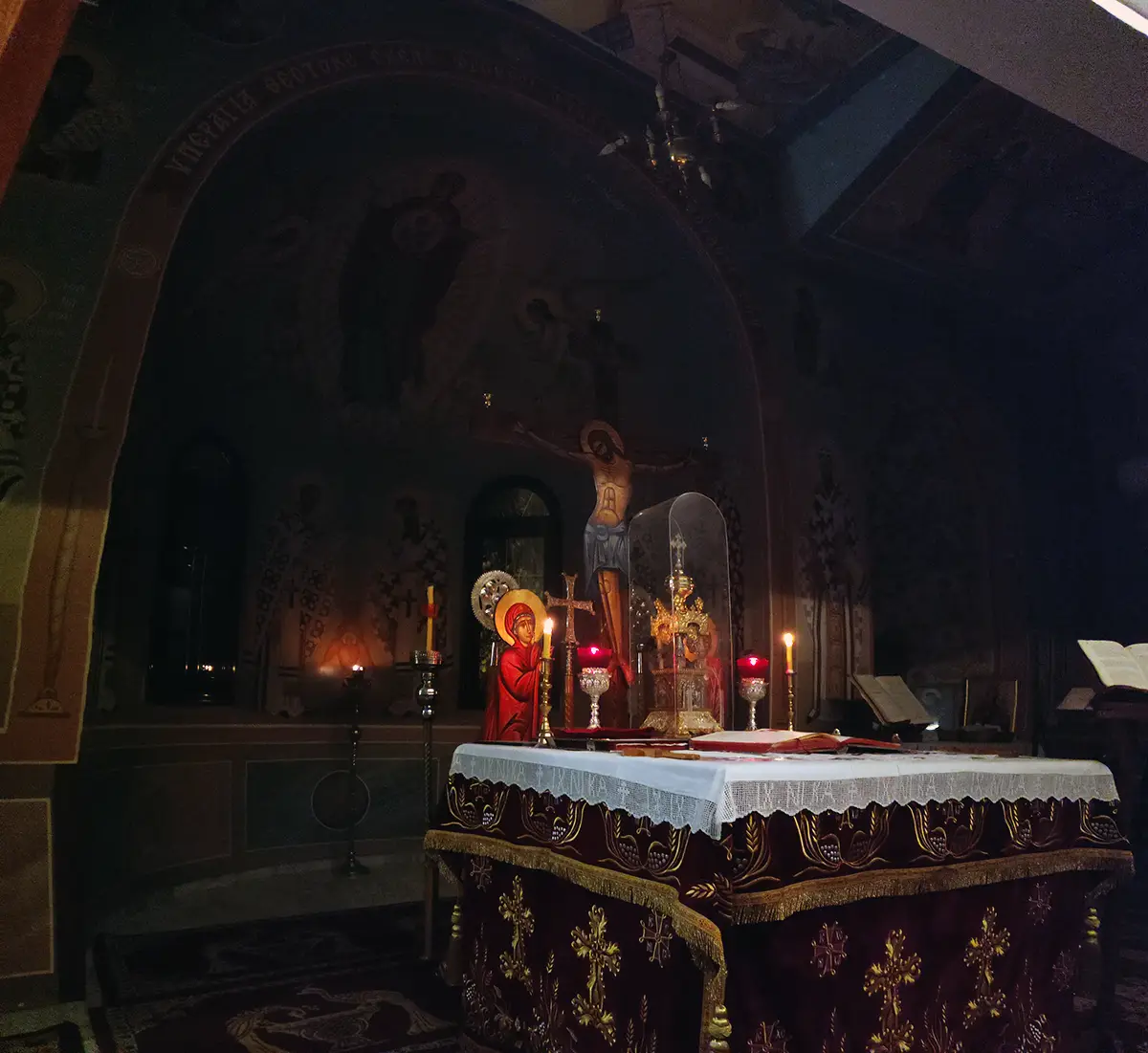 Στις φωτογραφίες που ακολουθούν, μπορείτε να δείτε τη λεπτομέρεια και την ευλάβεια με την οποία φιλοτεχνήθηκε το Ιερό μας, εκεί όπου τελείται το μυστήριο της Θείας Ευχαριστίας.